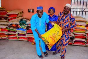 The Queen of Apomu Kingdom, Olori Janet Afolabi has distributed 150 bags of 50kg rice to residents of Apomu town of Osun State for the celebration of Ileya Festival, just as she equally launched a foot bank.